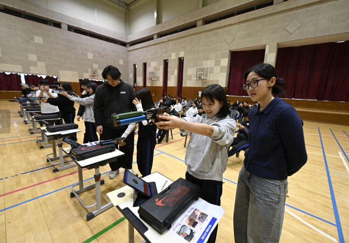 25일 오전에는 하늘중학교 1학년 학생들을 대상으로 강당 및 사격장에서 레이저 사격 체험 및 특강을 진행하여 학생들에게 사격의 매력을 직접 느낄 수 있는 기회를 제공했다.