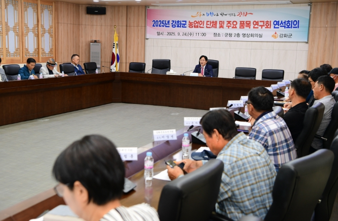 [파이낸셜경제=김예빈 기자] 강화군은 지난 24일 관내 농업인 단체장과 주요 품목 연구회 대표들과 함께 연석회의를 열고, 가을철 수확기를 맞은 농산물의 고품질 유지와 농업 발전 방안을 모색했다.