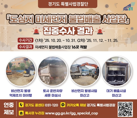 [파이낸셜경제=김기보 기자] 경기도는 도심지 미세먼지 발생사업장 330개를 대상으로 불법 배출 행위를 집중 수사해 대기환경보전법 위반 사업장 16개를 적발했다고 9일 밝혔다.