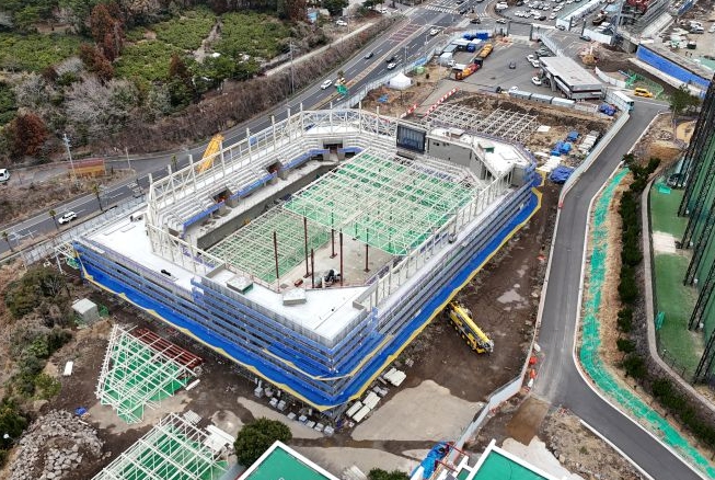 공정률은 당초 계획 대비 초과 달성하여 2월 기준 54.4%로 이미 절반을 상회하고 있다. 또한, 3월 이후 지붕 트러스 공정이 완료되면 기후 영향 없이 내부공사를 진행할 수 있어 공정 지연 없이 10월 준공할 예정이다.