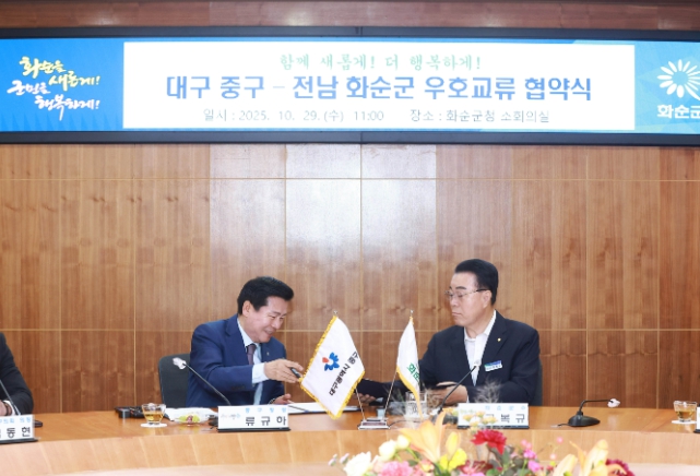 이날 협약식에는 구복규 화순군수와 류규하 대구 중구청장, 오형열 화순군의회 의장, 김동현 대구중구의회 의장을 비롯한 주민자치회, 새마을회 대표 등 민관이 함께 참석하여 그 의미를 더했다.