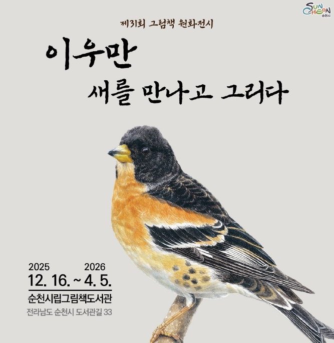 [파이낸셜경제=김예빈 기자] 순천시는 오는 16일부터 2026년 4월 5일까지 순천시립그림책도서관에서 제31회 그림책 원화전시 '이우만 새를 만나고 그리다' 를 개최한다.