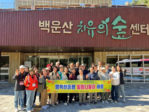 [파이낸셜경제=김예빈 기자] 광양시 치매안심센터는 지난 10월 29일 백운산 치유의 숲에서 치매 환자와 가족을 위한 ‘힐링 나들이’ 행사를 운영했다고 밝혔다.