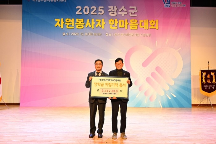 이민호 장수군자원봉사센터 이사장은 “지역을 위해 봉사해오신 자원봉사자들의 마음을 모아 학생들이 성장하는데 작은 보탬이 되길 바라며 앞으로도 지역 인재를 응원하겠다.”고 소감을 밝혔다.