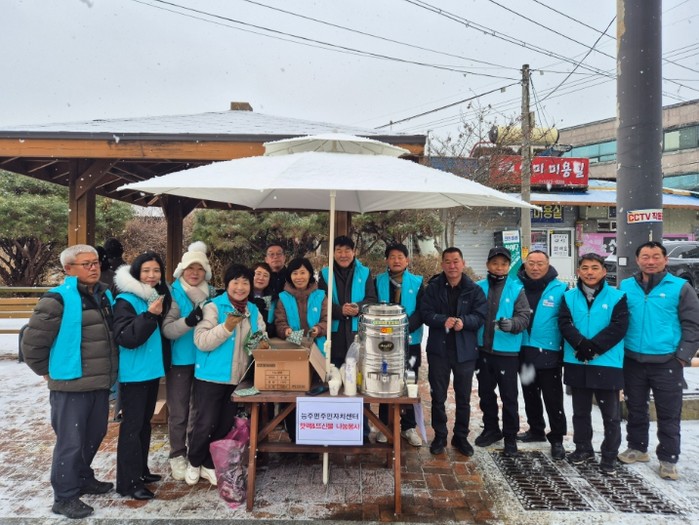 능주면 주민자치센터는 지난 2월 10일 능주 5일 장 일원과 관내 버스정류장 등 유동 인구가 많은 장소를 찾아 ‘핫팩 및 뜨신물(따뜻한 차) 나눔’ 봉사활동을 전개했다.