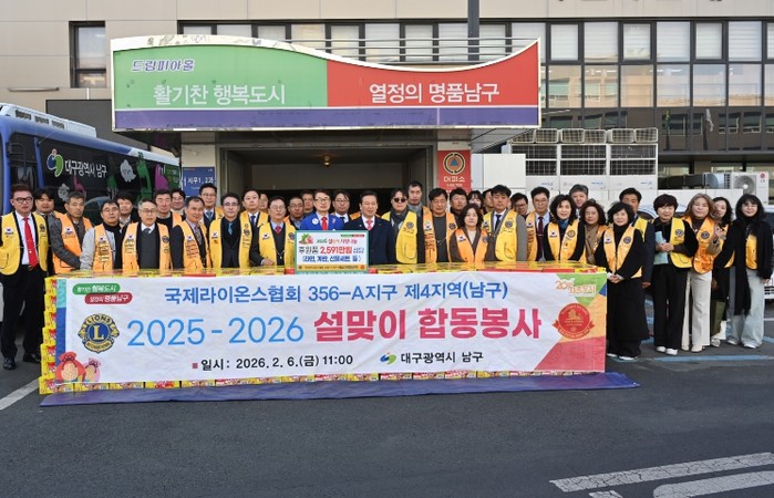 [파이낸셜경제=김지훈 기자] 대구 남구는 지난 6일, 설 명절을 앞두고 국제라이온스협회 356-A지구 제4지역(부총재: 강민성)에서 합동봉사를 펼쳤다고 밝혔다.