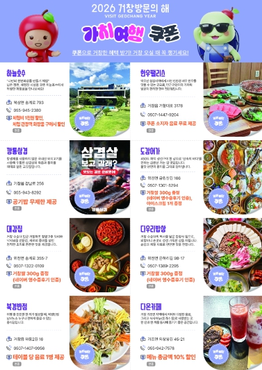 이번 가치여행 쿠폰북은 행정 주도의 일방적인 관광 홍보를 넘어, 지역 관광 현장의 주체인 민간이 자발적으로 참여해 혜택과 서비스를 제안했다는 점에서 의미가 크다. 참여업체들은 할인, 추가 서비스, 체험 혜택 등 각자의 방식으로 관광객을 맞이하며, ‘환대와 감동’이라는 거창방문의 해의 방향성을 현장에서 직접 실천하고 있다.