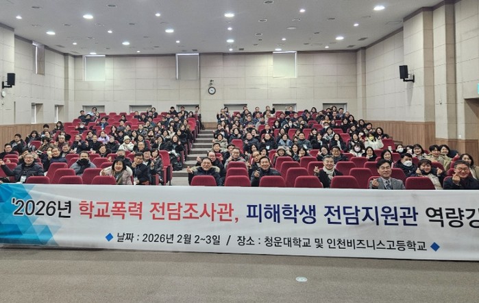 [파이낸셜경제=김기보 기자] 인천광역시교육청은 지난 2일부터 이틀간 청운대학교와 인천비즈니스고등학교에서 ‘2026년 학교폭력 전담조사관 역량 강화 연수’를 실시하고, ‘학교폭력 보안관’ 운영 준비를 마쳤다.