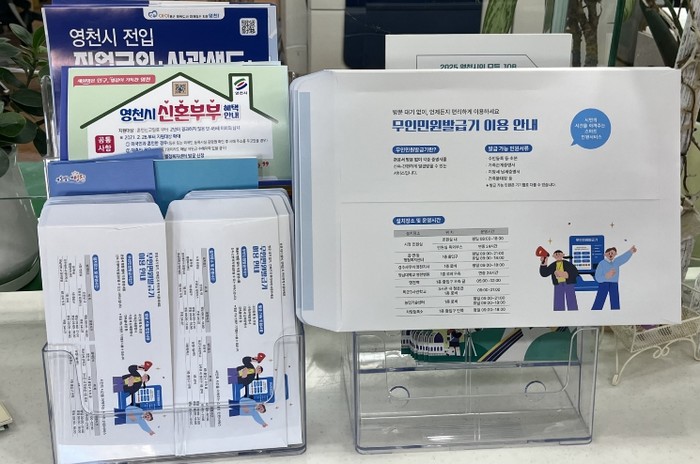 한편, 영천시 무인민원발급기는 총 24대로, 시청과 읍·면·동 행정복지센터를 비롯해 농업기술센터, 경주세무서 영천지서, 영천역, 영남대학교 영천병원, 육군3사관학교, 차량등록소 등에 설치되어 있으며, 오는 3월 1대를 추가로 설치할 예정이다.