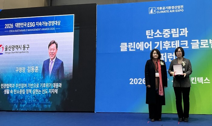 [파이낸셜경제=김예빈 기자] 울산 동구는 환경일보와 한국환경경영학회가 공동으로 주최하는 2026 대한민국 ESG 지속 가능 경영대상에서 전국 19개 대상 수상기관 중 하나로 선정되는 영예를 안았다.
