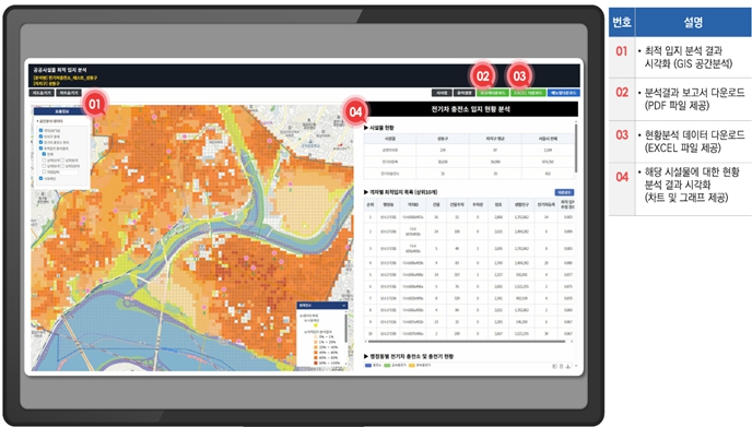 | ▲ 공공시설물 최적입지 분석결과 서비스화면(공무원 업무화면) |