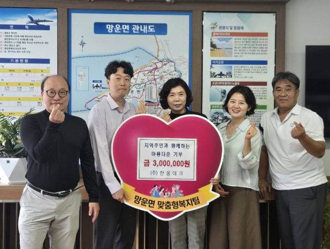 [파이낸셜경제=김예빈 기자] 무안군 망운면은 지난 25일, ㈜한웅테크가 지역의 사회적 약자와 어려운 이웃을 위해 사용해 달라며 이웃사랑 성금 300만 원을 기탁했다고 밝혔다.