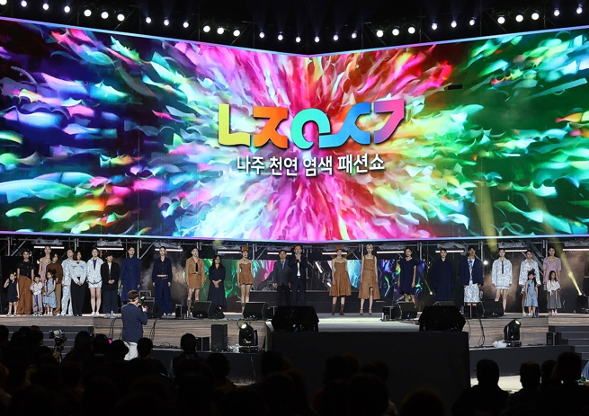 | ▲ 10월 8일부터 시작하는 ‘2025 나주영산강축제’에 ‘천연염색 패션쇼’가 주무대에 오른다. 사진은 ‘2024 나주영산강축제’에서 진행한 ‘천연염색 패션쇼’ 모습. (사진 제공-나주시) |