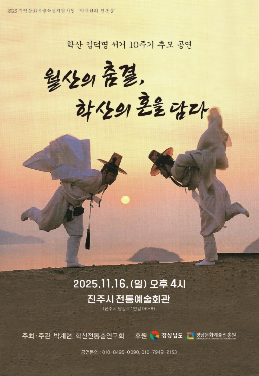 공연은 11월 16일 오후 4시 진주시전통예술회관에서 ‘월산의 춤결, 학산의 혼을 담다’라는 주제로 열린다.