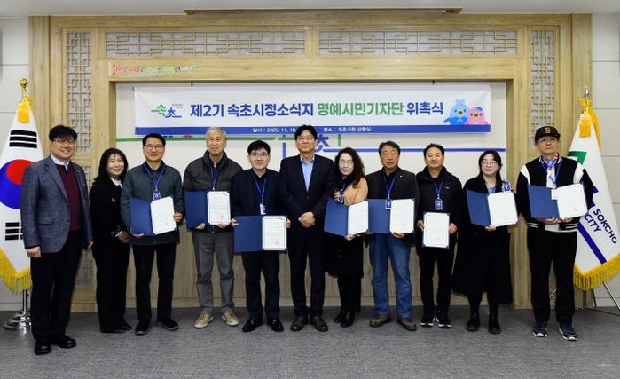 제2기 명예시민기자단은 9월 22일부터 10월 17일까지 15일간 공개모집을 통해 선발됐으며, 2025년 12월 1일부터 2027년 11월 30일까지 2년간 속초 시정소식지 ‘속초홀릭’ 콘텐츠 제작에 참여하게 된다.