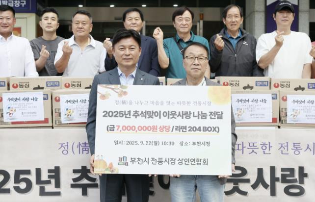 [파이낸셜경제=김기보 기자] 부천시는 지난 22일 시청에서 부천시전통시장상인연합회와 함께 추석을 맞아 ‘이웃돕기 라면 204박스 전달식’을 가졌다. 이번 전달은 추석 명절을 앞두고 취약계층을 지원하기 위한 목적으로 진행됐다.