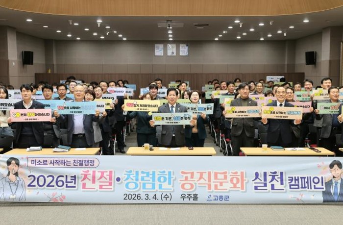 [파이낸셜경제=김예빈 기자] 고흥군은 4일 친절하고 청렴한 공직문화 조성을 위해 전 직원을 대상으로 ‘친절·청렴 실천 캠페인’을 실시했다고 밝혔다.