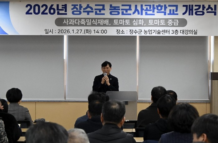 이날 개강식은 최훈식 장수군수의 격려사를 시작으로 김승희 한국농수산대 교수의 축사가 이어졌으며 △토마토 중급 △토마토 심화 △사과 다축·밀실 3개 과정에 대한 소개와 연간 일정 안내, 오리엔테이션이 진행됐다.