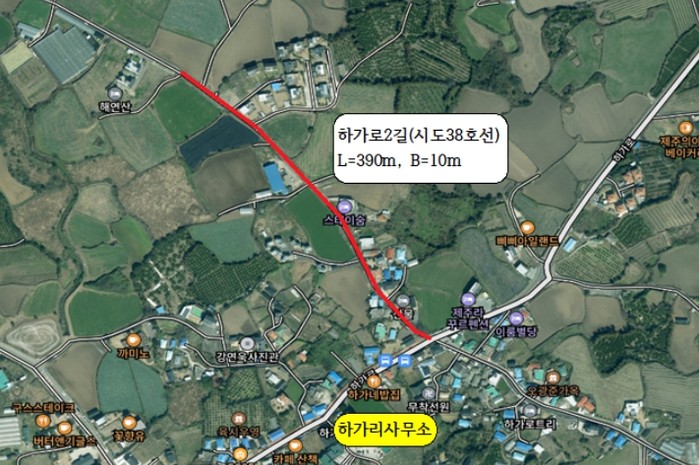 [파이낸셜경제=김영란 기자] 제주시는 애월읍 하가리 시도 38호선(L=390m, B=10m) 구간에 대한 도로 확·포장 공사를 마무리하고 9월 준공했다.