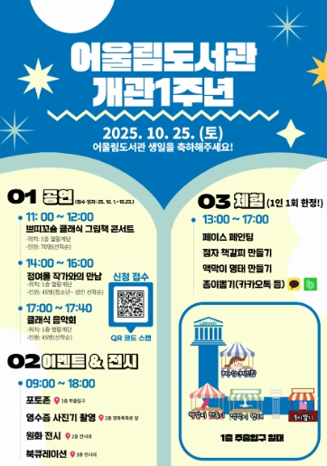 [파이낸셜경제=김예빈 기자] 남원어울림도서관 개관 1주년을 맞아 오는 10월 25일(토) 9시부터 도서관 내·외부에서 시민과 함께하는 행사를 개최한다.