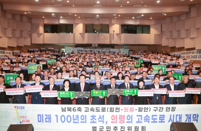 행사는 추진위원 소개와 국민의례에 이어 의령군의 추진 활동과 남북6축 고속도로 필요성을 담은 영상 상영, 결의문 낭독 순으로 진행됐다.