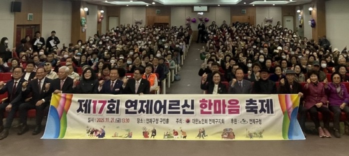 [파이낸셜경제=박영진 기자] 연제구는 11월 21일 오후 1시 30분 구청 구민홀에서 대한노인회 연제구지회(회장 윤봉숙)의 주관으로 ‘제17회 연제어르신 한마음축제’를 성황리에 개최했다.