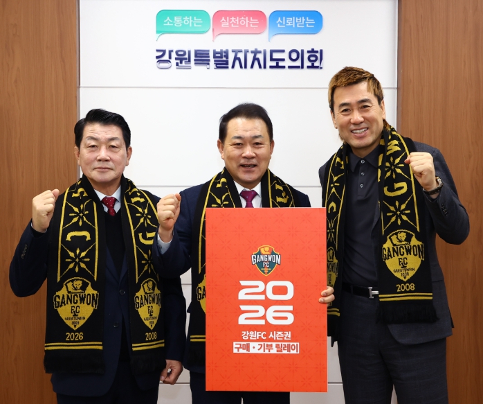 [파이낸셜경제=조성환 기자] 강원특별자치도의회는 2026년 강원FC의 선전과 도내 축구 열기 확산을 위해 ‘시즌권 구매-기부 릴레이’에 동참한다.