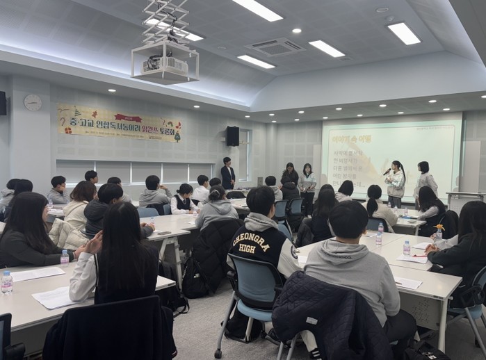 이어 김신 독서토론 전문 지도사의 진행으로 열린 비경쟁 독서토론에서는 학생들이 김동식 작가의 단편소설을 바탕으로 자유롭게 의견을 나누고, 현장 투표로 ‘올해의 도서’를 선정해 우수 동아리를 시상했다.