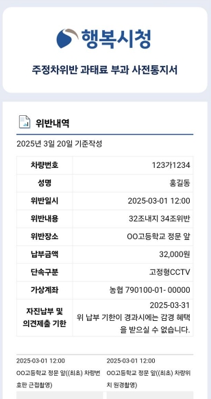 서비스는 4월부터 시행되며 위반 차량 소유주의 휴대전화(자동차 등록 정보 기준)로 카카오톡 알림톡을 통해 고지서를 발송하는 방식이다.