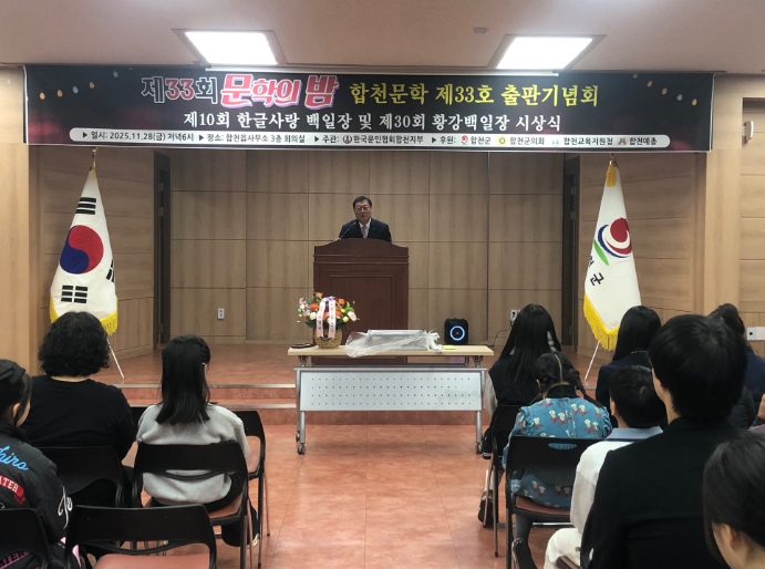 이번 행사는 (사)한국문인협회 합천지부(지부장 최병태) 주관으로 개최됐으며, '합천문학' 제33호 발간을 기념하고 ‘제10회 한글사랑백일장’ 및 ‘제30회 황강백일장’의 시상식이 함께 진행됐다.