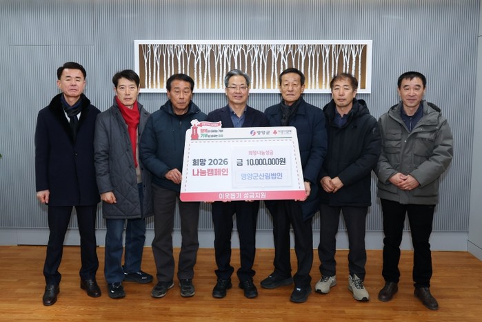 [파이낸셜경제=김지훈 기자] 영양군 관내 산림사업 법인 6개사가 1월 26일 영양군청을 합동 방문해, 어려운 이웃을 위한 '희망2026나눔캠페인' 성금 1,000만원을 전달하며 지역사회에 훈훈한 감동을 전했다.