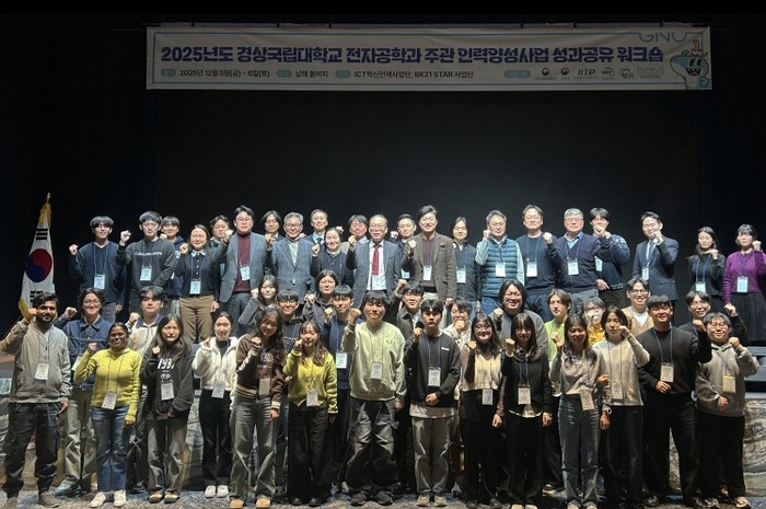 [파이낸셜경제=김예빈 기자] 경상국립대학교 ICT혁신인재사업단과 S2X인공지능기반유무인복합체계교육연구단(이하 BK21 STAR사업단)(양 사업단 단장 이왕상 전자공학부 교수)은 12월 5~6일 쏠비치 남해에서 ‘2025년도 경상국립대학교 전자공학과 주관 인력양성사업 성과공유 워크숍’을 개최했다.