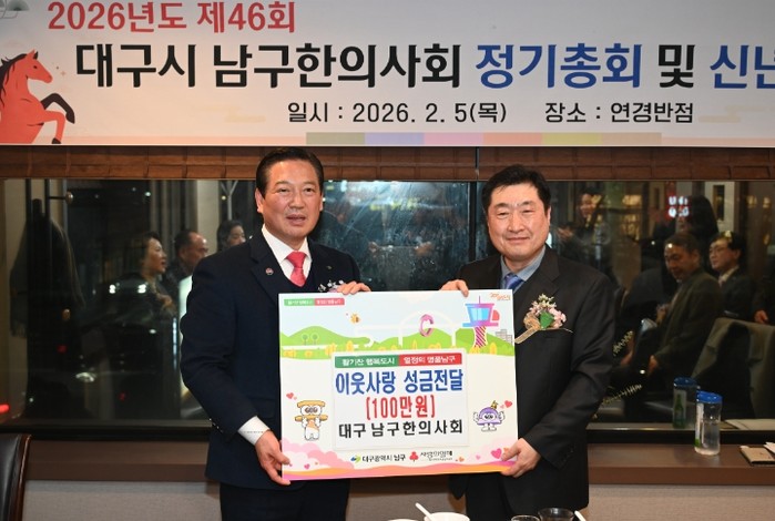 대구광역시 남구 한의사회는 지난 5일 개최된 제46회 남구한의사회 정기총회 및 신년교례회에서 새해를 맞아 지역사회 내 어려운 이웃을 돕기 위해 성금 100만 원을 대구 남구청에 전달했다.