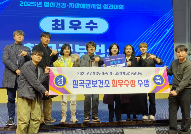[파이낸셜경제=김지훈 기자] 칠곡군은 지난 8일 구미 호텔금오산에서 열린 ‘2025년 경상북도 정신건강·자살예방사업 성과대회’에서 “최우수상”을 수상했다.