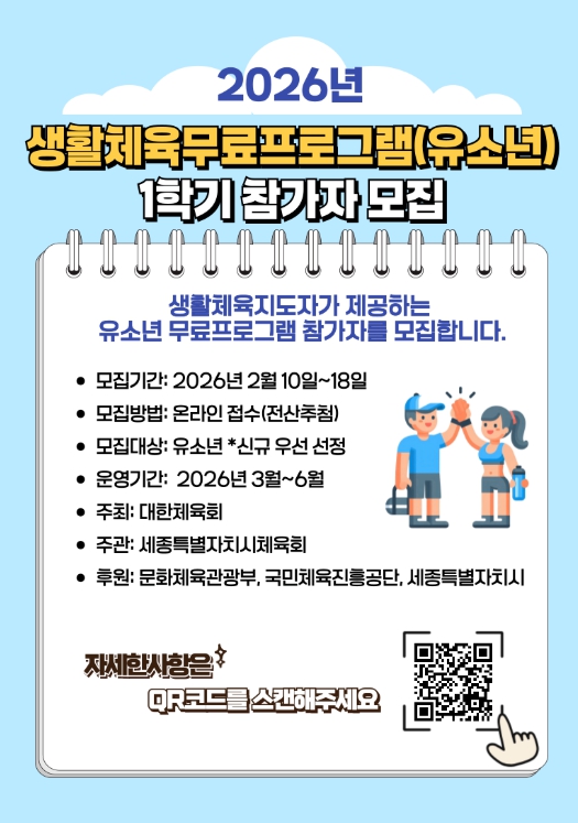 | ▲ 2026년 유소년 생활체육 무료교실 1학기 참가자 모집 |