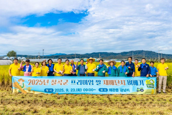 [파이낸셜경제=김지훈 기자] 칠곡군은 23일 왜관읍 금남리에서 ‘칠곡군 프리미엄 쌀 재배단지 벼베기 행사’를 개최했다.