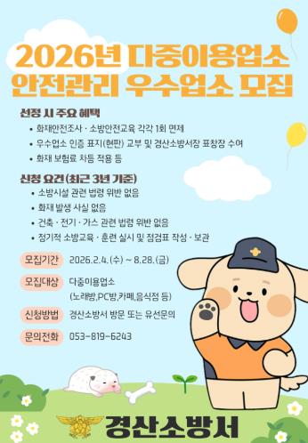| ▲ 경산소방서, ‘2026년 다중이용업소 안전관리 우수업소’ 모집 |