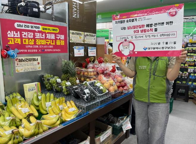 [파이낸셜경제=김지훈 기자] 대구 중구보건소는 성내3동 ‘건강동네 심(心)터 조성 사업’의 일환으로 쉼터카페(북성로 27-2)와 대백마트 달성공원점(달성로21길 27)을 각각 심뇌혈관질환 예방 건강카페와 건강마트로 지정하고, 주민 맞춤형 건강 네트워크를 확대하고 있다고 밝혔다.