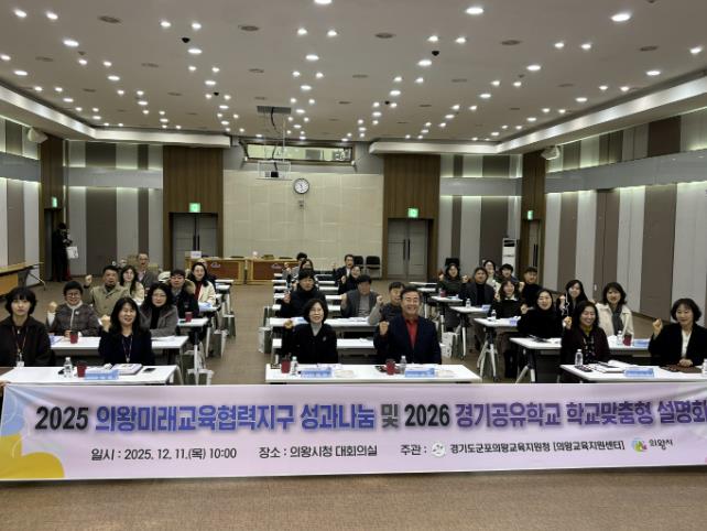 [파이낸셜경제=김기보 기자] 경기도군포의왕교육지원청은 11일 의왕시청 대회의실에서 의왕시 초·중·고 및 특수학교 교감 및 업무담당 교사를 대상으로 '2026 경기공유학교 지역맞춤형 및 학교맞춤형 설명회'를 개최했다.