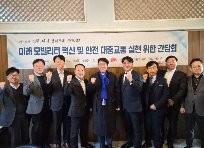 시는 12일 전북도청 일원에서 현대 및 기아자동차 전북지역본부 관계자들과 대중교통 정책 현황을 공유하고, 급격한 도시 변화에 대응하는 교통체계 개편 방안을 논의하기 위해 ‘미래 모빌리티 혁신 및 안전한 대중교통 실현을 위한 간담회’를 개최했다.