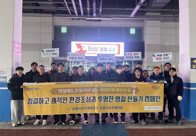 [파이낸셜경제=김예빈 기자] 김해시도시개발공사 진영스포츠센터는 설 명절을 앞두고 센터 인근 주천강 일대에서 환경정화 활동과 청렴문화 확산 캠페인을 전개했다고 11일 밝혔다.