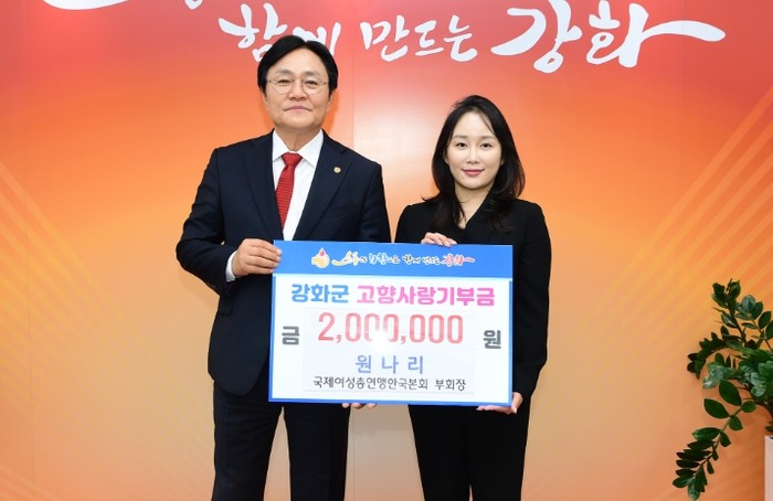 [파이낸셜경제=김기보 기자] 강화군은 지난 20일 원나리 국제여성총연맹한국본회(KGFWC) 부회장이 올해 ‘강화군 고향사랑기부제’의 11번째 고액 기부자로 참여했다고 밝혔다.