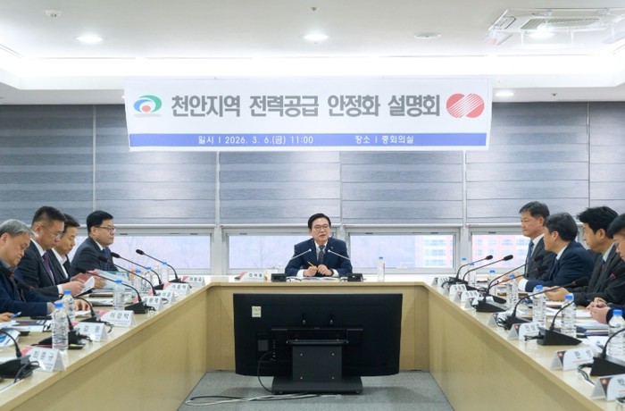 [파이낸셜경제=김영란 기자] 천안시는 6일 시청 중회의실에서 한국전력공사 대전세종충남본부와 함께 ‘천안지역 전력공급 안정화를 위한 설명회’를 개최하고 중장기 전력 인프라 확충 방안을 논의했다.