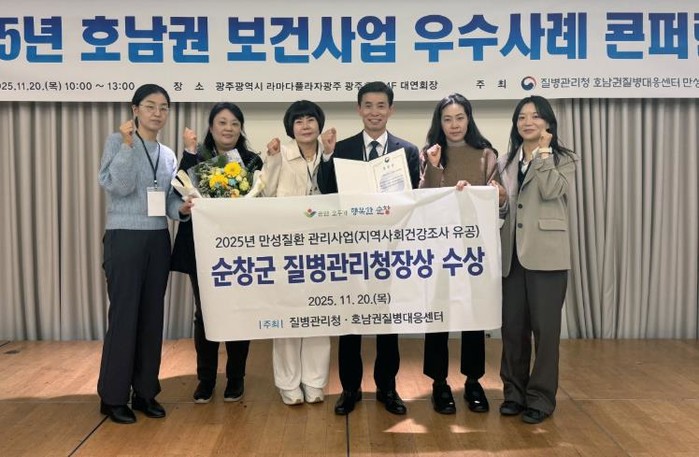 [파이낸셜경제=김예빈 기자] 순창군이 지난 20일 2025년 호남권 만성질환 관리사업 중 ‘지역사회건강조사’ 분야에서 우수 유공기관으로 선정되어 질병관리청장 표창을 수상했다.