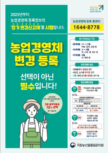 | ▲ 농업경영체 등록정보가 바뀌면 변경 신고는 필수! |