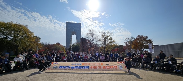 [파이낸셜경제=김예빈 기자] (재)김해시복지재단 장애인종합복지관은 지난 13일 제18기 늘푸른대학 졸업을 맞이하여 프로그램 참여자 80여명과 함께 『제18기 늘푸른대학』 졸업여행을 실시했다.