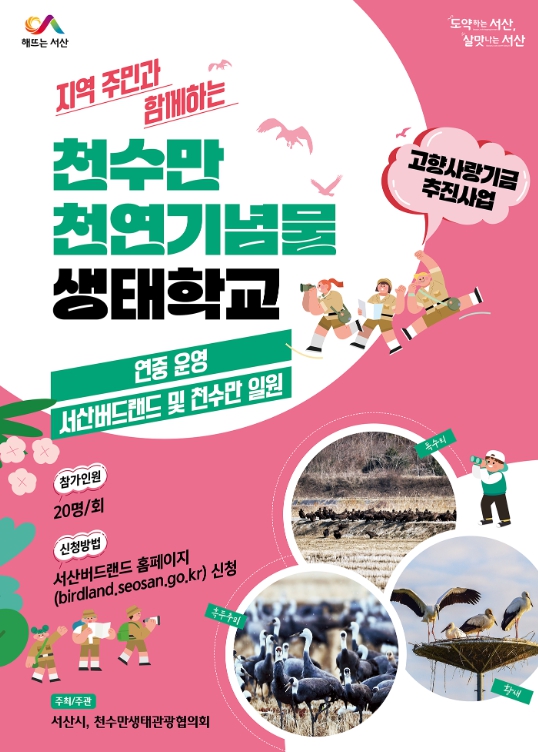 [파이낸셜경제=김영란 기자] 충남 서산시는 올해 ‘지역 주민과 함께하는 천수만 천연기념물 생태학교’가 개최된다고 밝혔다.