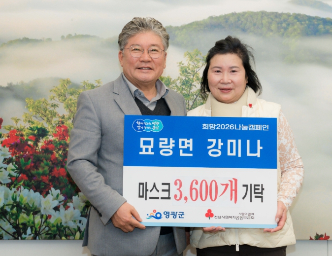 [파이낸셜경제=김예빈 기자] 영광군은 2025년 12월 30일 묘량면에 거주하는 강미나 씨가 어려운 이웃들에게 전달해달라며 마스크 3,600개를 기탁해 희망2026나눔캠페인에 동참했다고 밝혔다.
