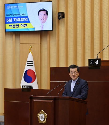 [파이낸셜경제=김예빈 기자] 광주 서구의회 백종한 의원(화정3동, 화정4동, 풍암동)이 23일 제337회 임시회 제2차 본회의에서 5분자유발언을 통해 재난·안전·민생·복지 현장에서 근무해 온 공직자들의 노고를 치하했다.