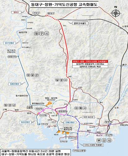 | ▲ 동대구~창원~가덕도신공항 고속화철도 노선도 |